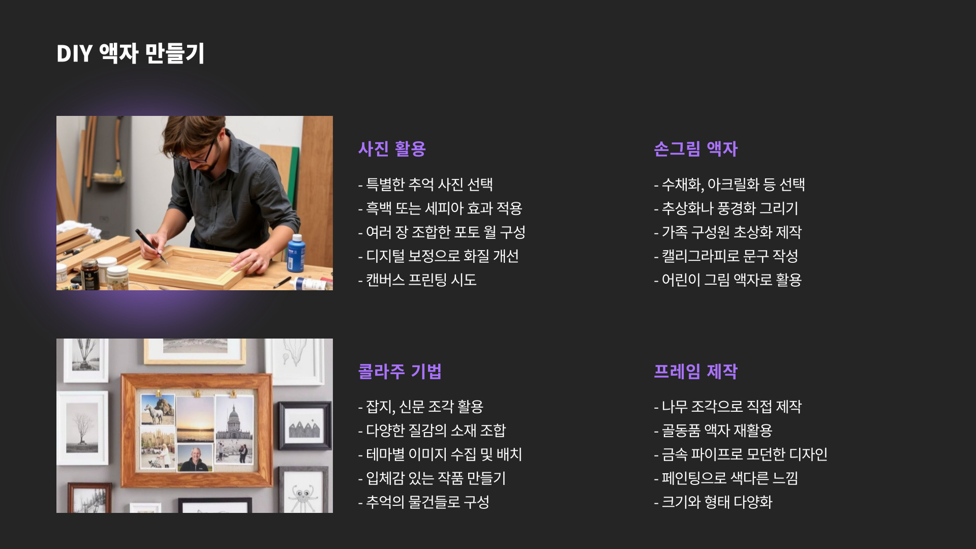 - 관리: 정기적인 관리로 그림을 오랫동안 보존할 수 있습니다.