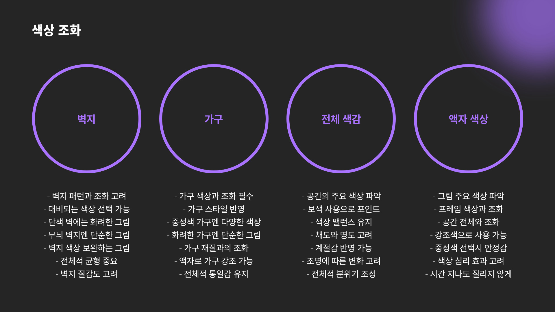 - 적절한 색상 및 주제 선택이 필수