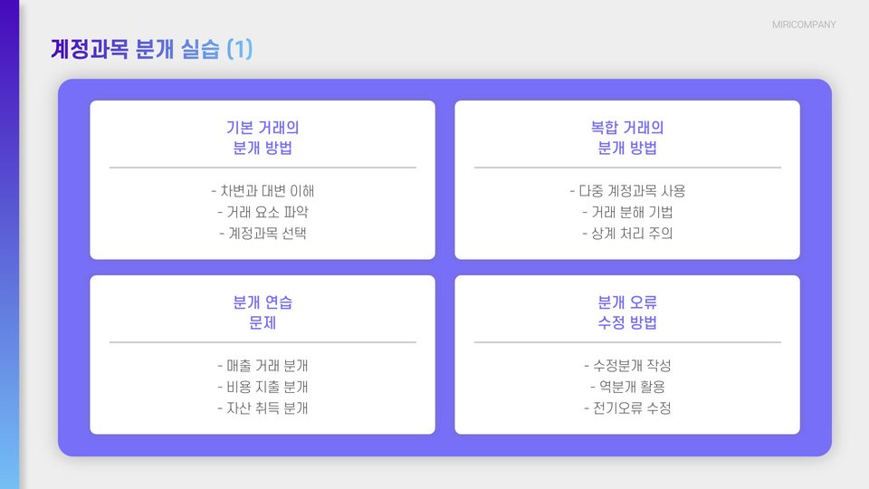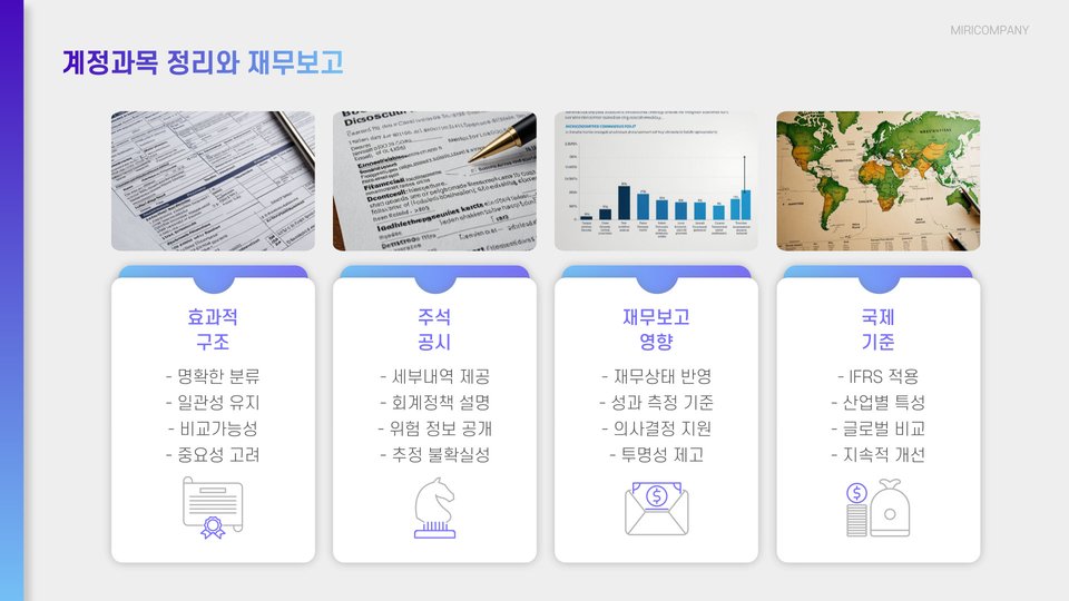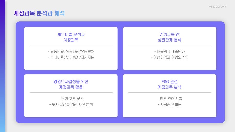 - 계정과목은 재무 거래의 분류 체계입니다.
