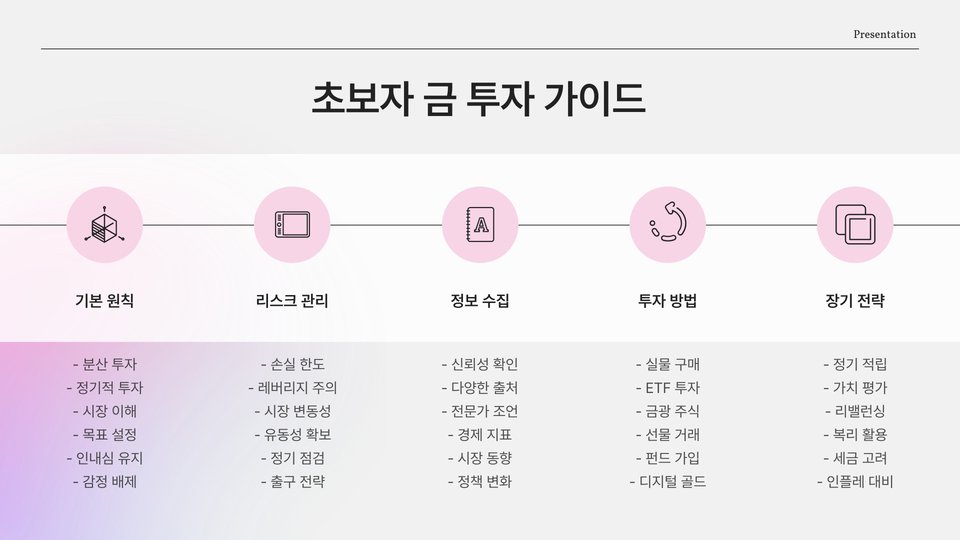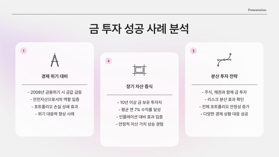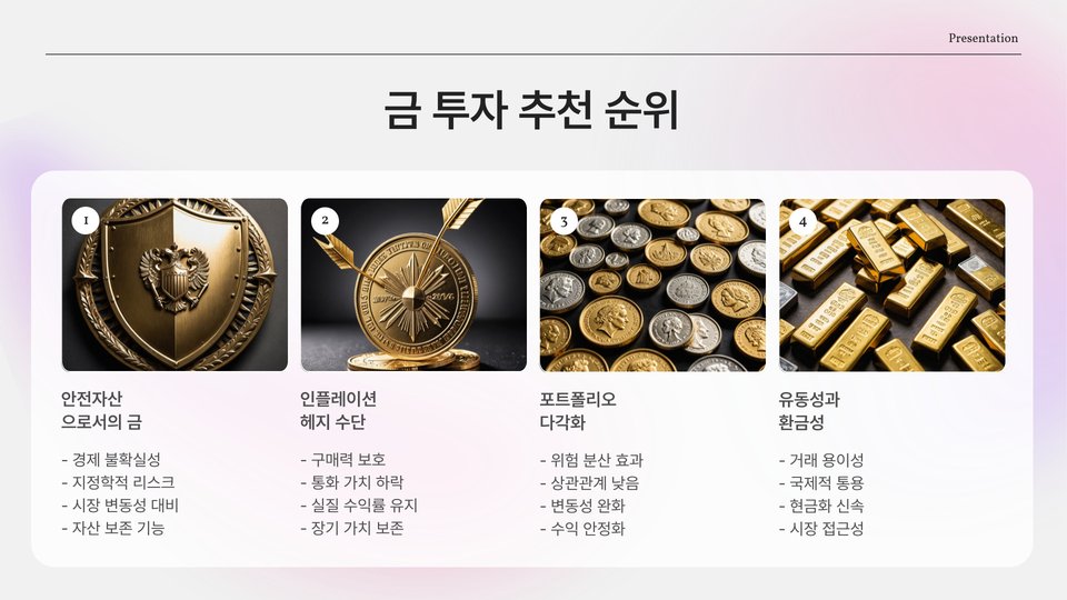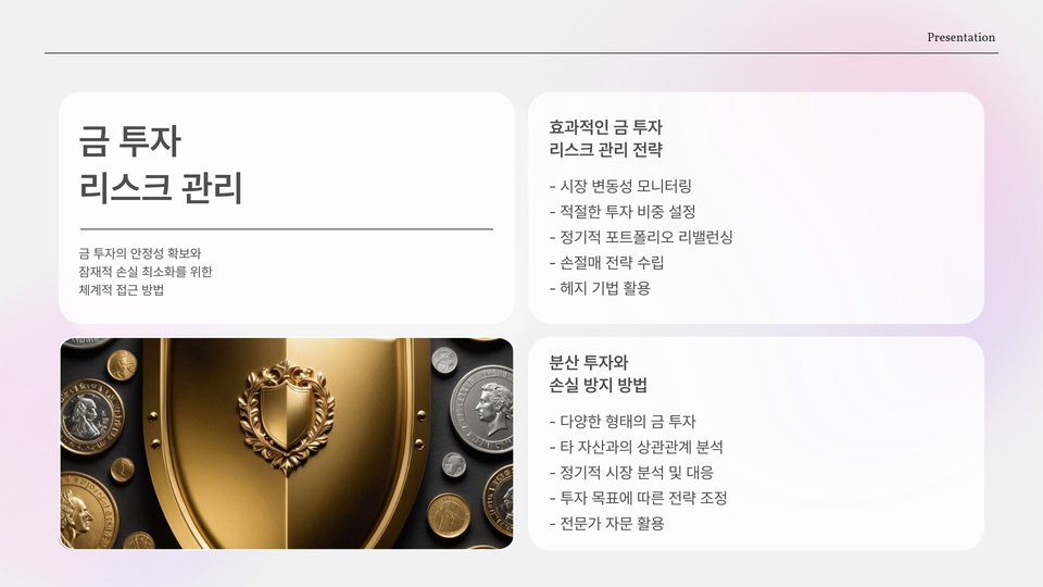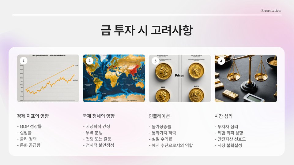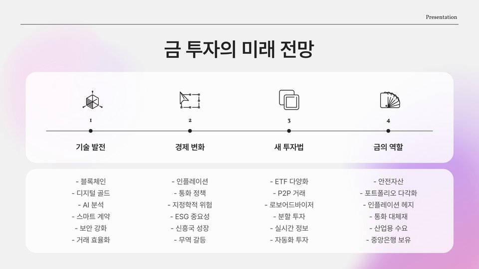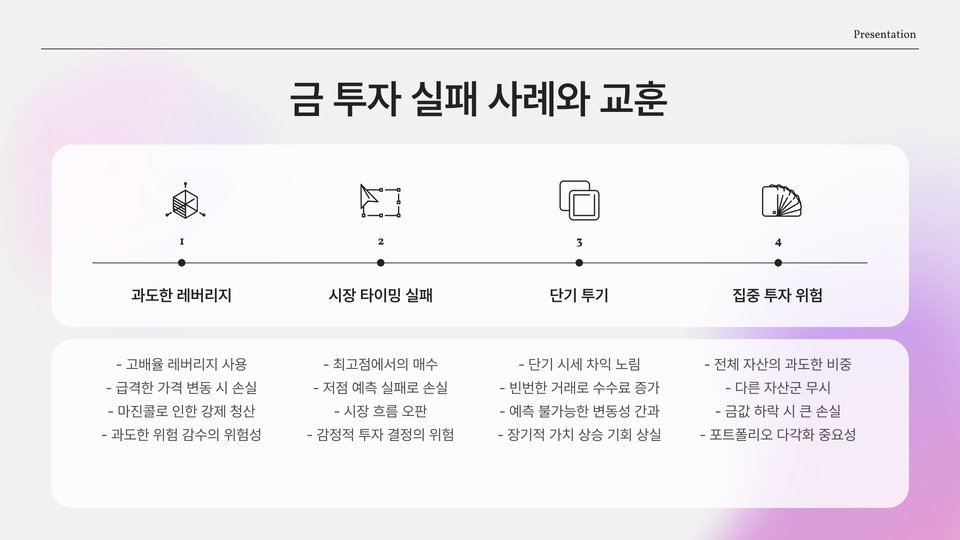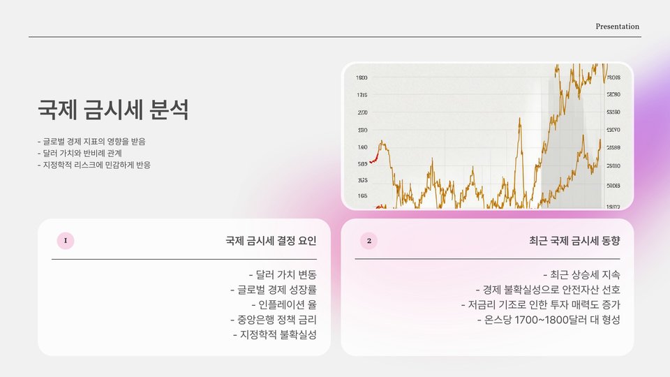 - 시장 분석을 통해 현재 금 가격의 트렌드를 파악하세요.