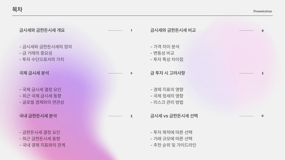 결국, 비교형 금시세와 금한돈시세는 각각의 장단점이 있으며, 투자자들은 자신의 투자 성향에 맞추어 적절한 선택을 해야 합니다. 시장의 동향을 파악하고, 다양한 정보를 종합하여 현명한 투자 결정을 내리는 것이 중요합니다. 이 두 가지 시세를 잘 활용하면 금 투자에서 성공적인 결과를 얻을 수 있을 것입니다.