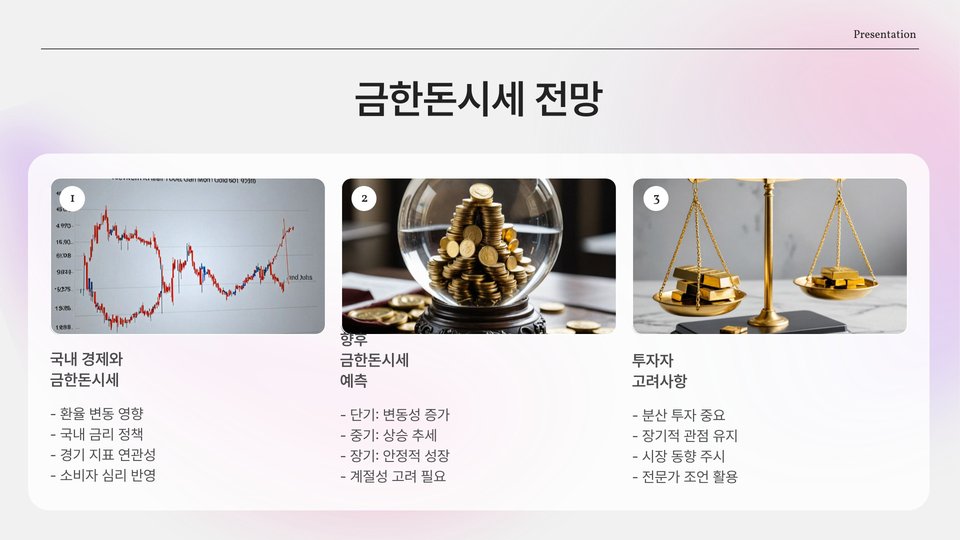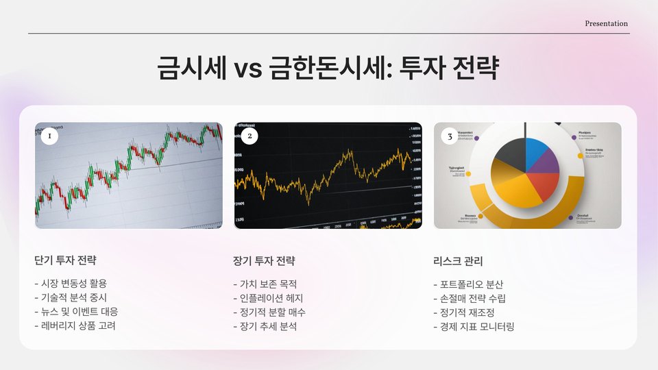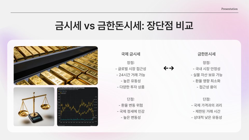 하지만 금한돈시세의 단점은 상대적으로 국제 금 시세의 영향을 덜 받을 수 있다는 점입니다. 이로 인해 가격 차익을 추구하는 투자자에게는 상대적으로 불리한 경우가 발생할 수 있습니다. 특히, 금한돈 시세는 지역적 편차가 발생할 수 있어, 이를 사전에 검토하는 것이 중요한 요소입니다.