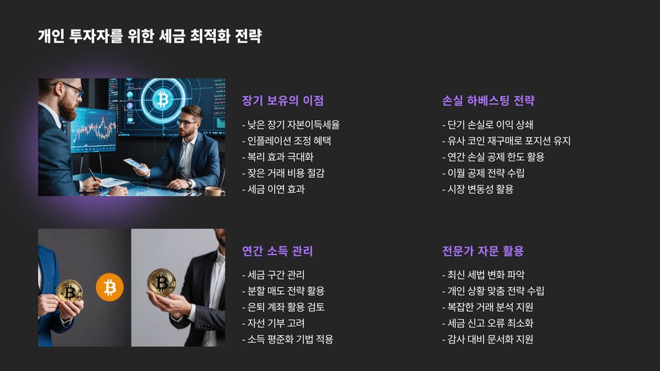 - 정확한 세금 신고와 전문가 상담이 중요.
