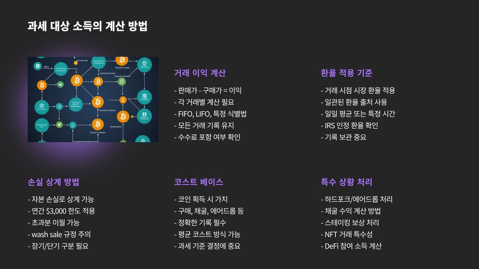 중요 팁: 모든 거래 정보를 정확히 기록하고, 관련 세금 양식을 제때 제출하는 것이 중요합니다.