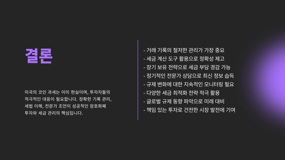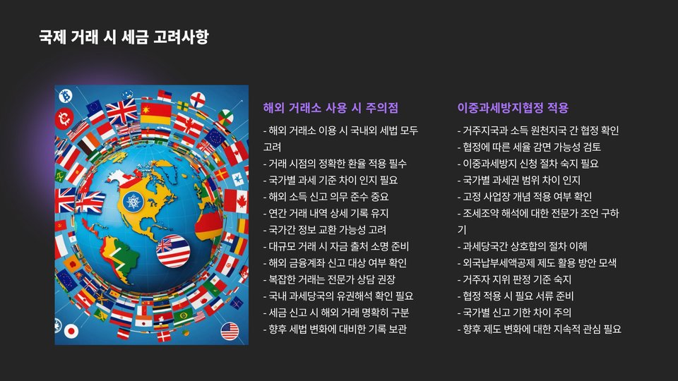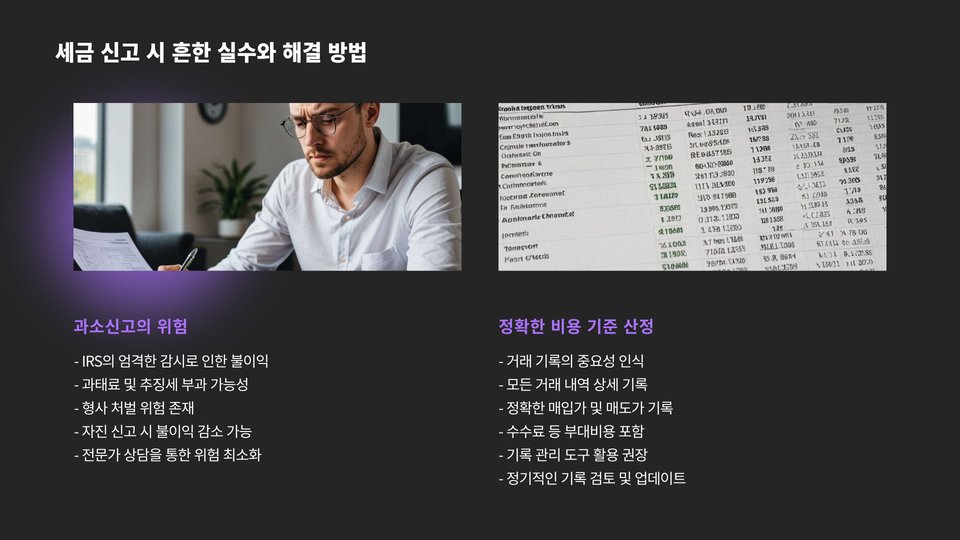 - 정확한 세금 신고와 전문가 상담이 중요.