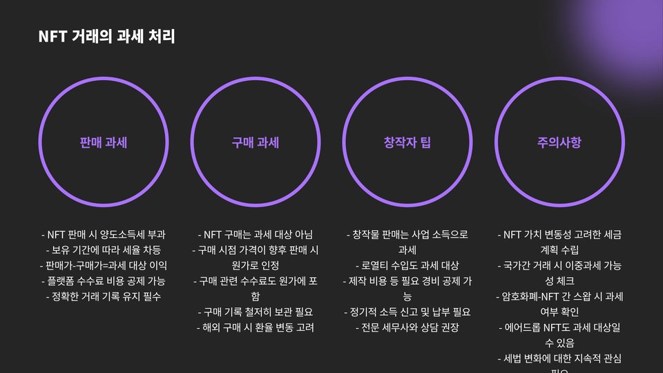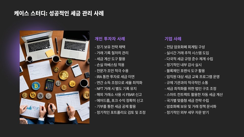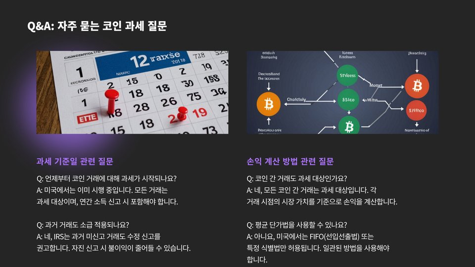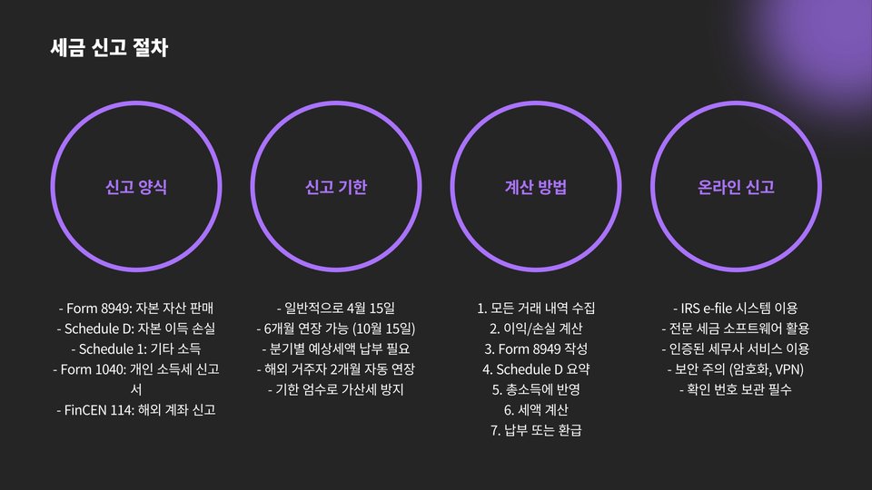 중요 팁: 모든 거래 정보를 정확히 기록하고, 관련 세금 양식을 제때 제출하는 것이 중요합니다.
