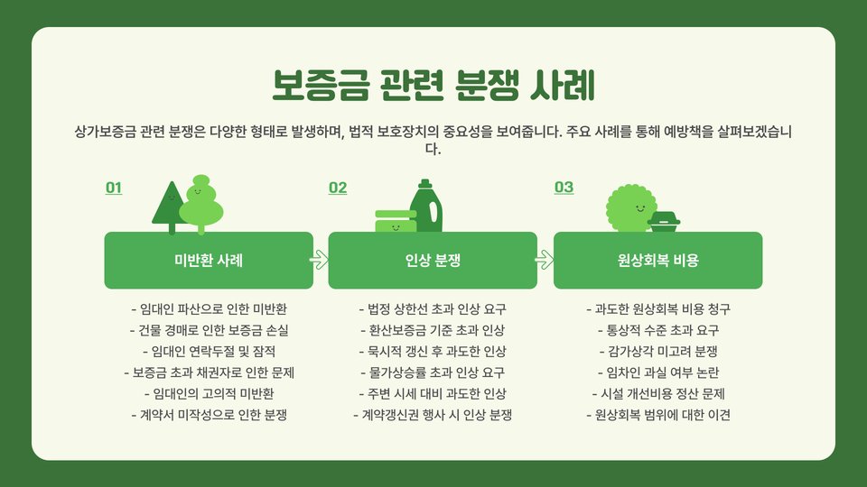 - 상가보증금은 임대인과 임차인 간의 계약에서 필수적임.