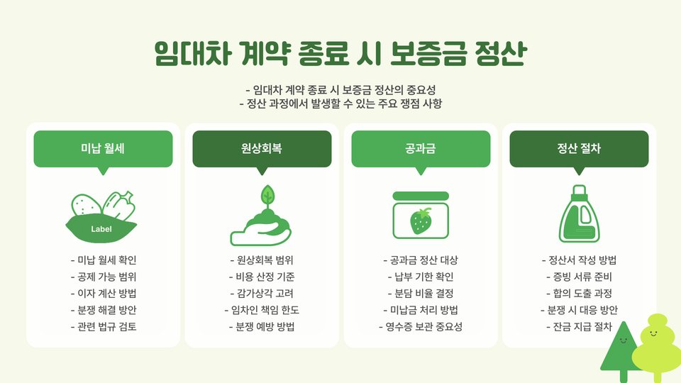 - 보증금 반환 조건과 이자에 대한 합의 필요.