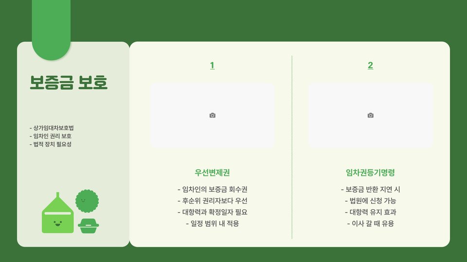 - 상가보증금은 임대차 계약의 안전망 역할을 한다.