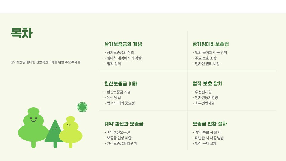 상가보증금의 목적은 궁극적으로 임대인에게 임대 재산의 안전을 보장하고, 임차인에게는 임대인으로부터 계약을 유지하는 보장입니다. 이 금액은 일반적으로 건물의 가치나 위치, 임대 조건들에 따라 차등 지급됩니다. 그 만큼 상가보증금은 임차인의 상가 운영에 있어 매우 중요한 요소로 작용합니다.