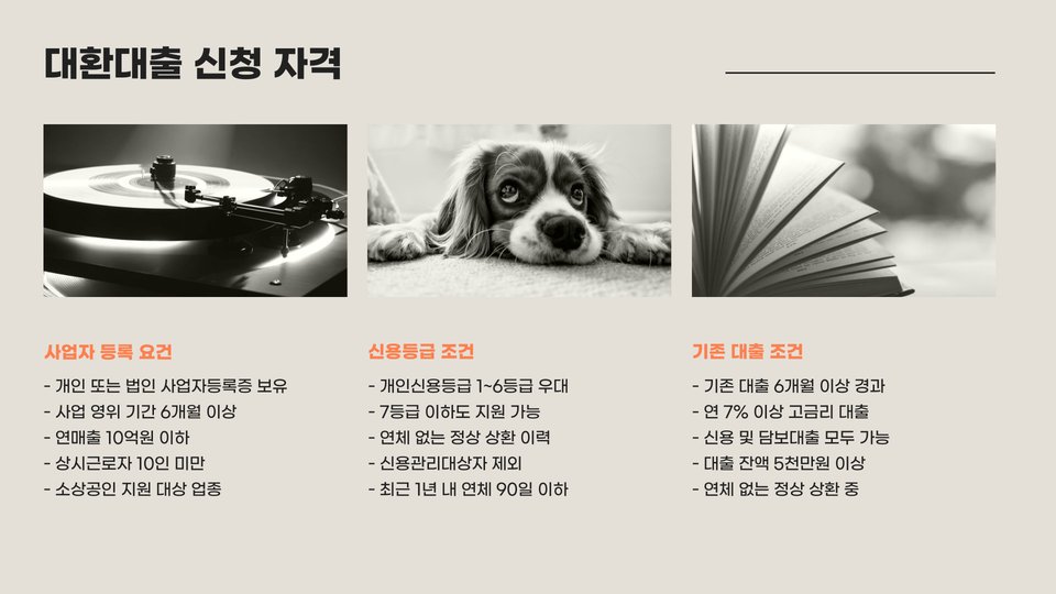 이 정보를 바탕으로 소상공인 여러분이 저금리 대환대출 상품을 선택하셔서, 사업에 더욱 성공적인 발판이 되기를 기원합니다!