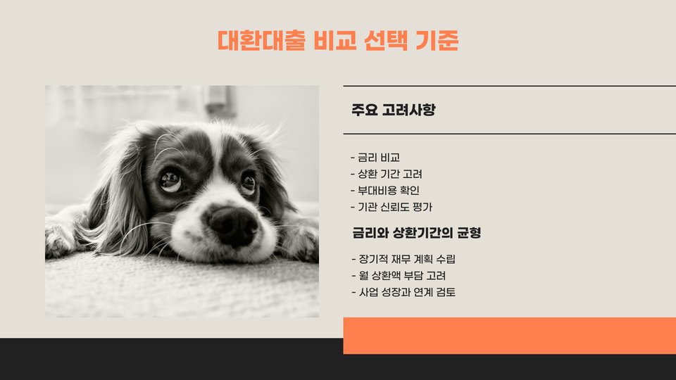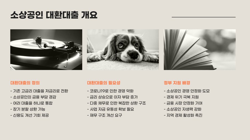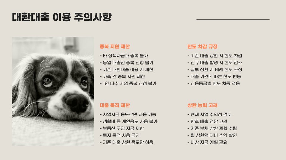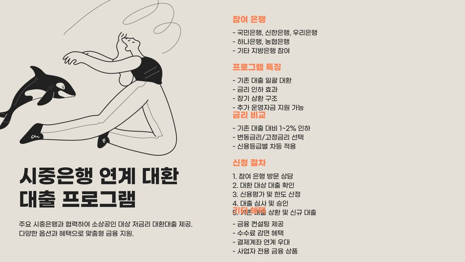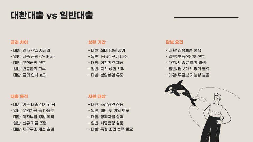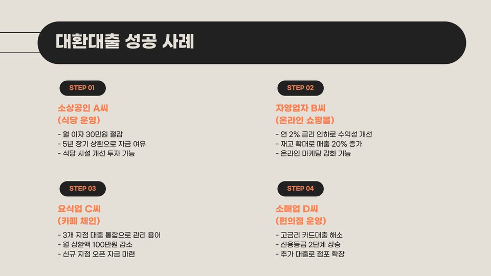 - 대환대출은 소상공인의 재정적 부담을 경감시켜 줍니다.