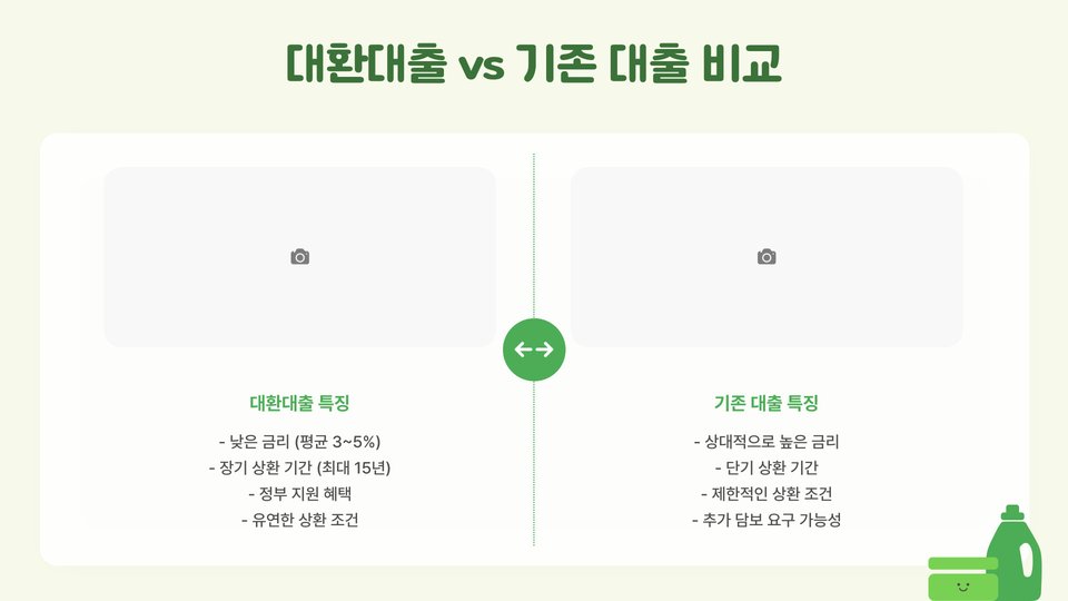 이러한 다양한 대환대출 옵션을 비교 분석할 때는 금리, 상환 조건, 절차의 간편함 등을 고려해야 합니다. 특히, 대출을 신청하기 전에 충분한 정보를 수집하고, 자신에게 가장 적합한 대환대출 상품을 선택하는 것이 중요합니다.