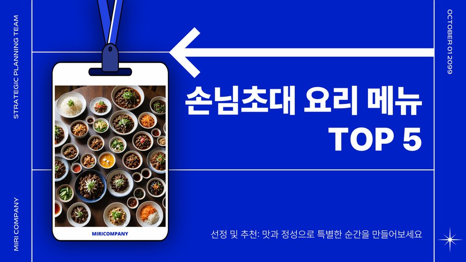 손님을 초대할 때, 가장 중요한 것은 바로 요리 메뉴입니다. 어떤 음식을 준비해야 할지 고민하는 것은 매우 일반적인 일이죠. 이번 포스트에서는 손님을 초대할 때 준비하면 좋을 요리 메뉴 TOP 5를 선정하여 추천해드리겠습니다. 각 메뉴는 손님들에게 깊은 인상을 남길 수 있는 요리들로 구성되어 있습니다.