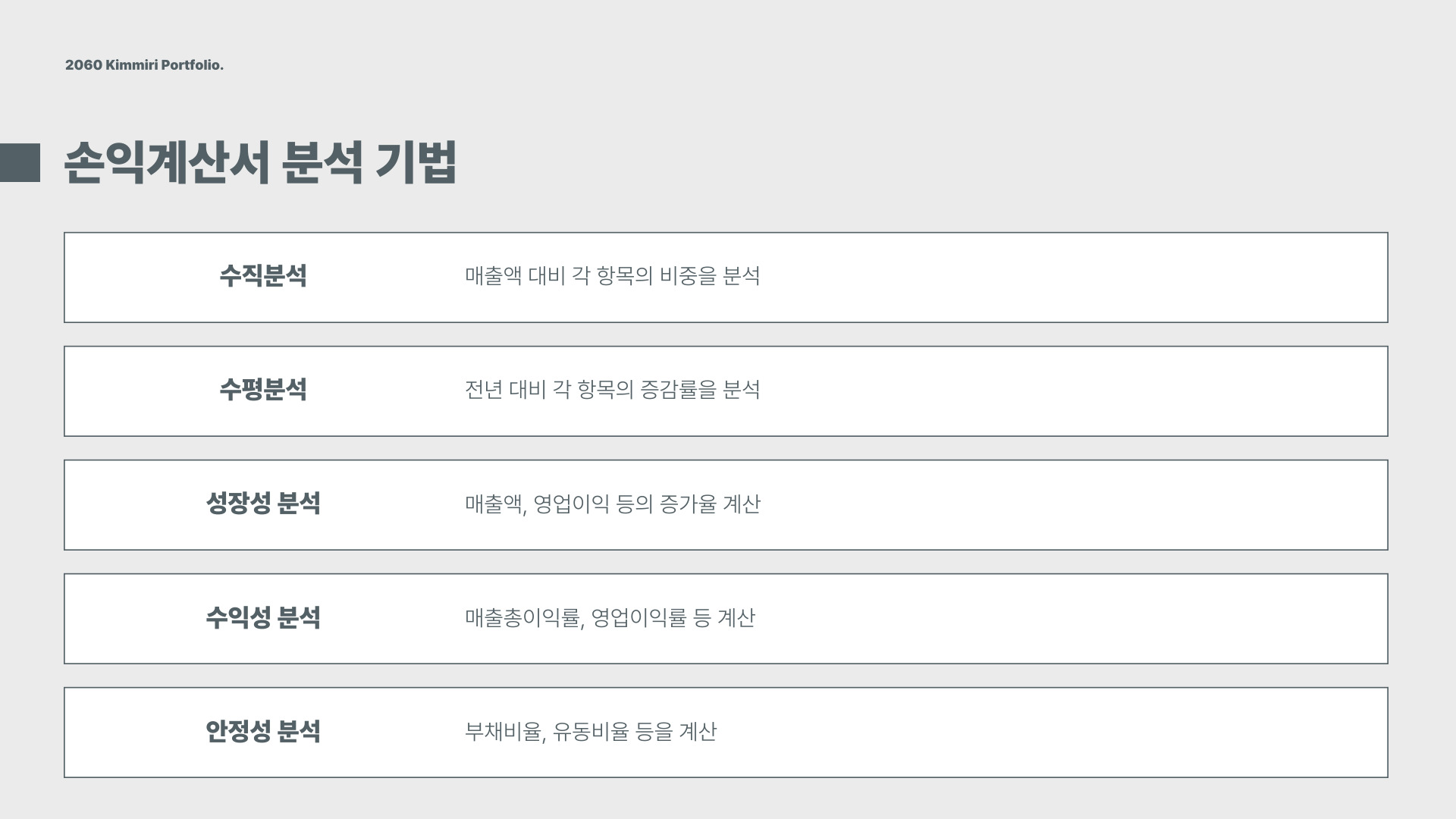 - 다양한 분석 기법을 통해 손익계산서 이해