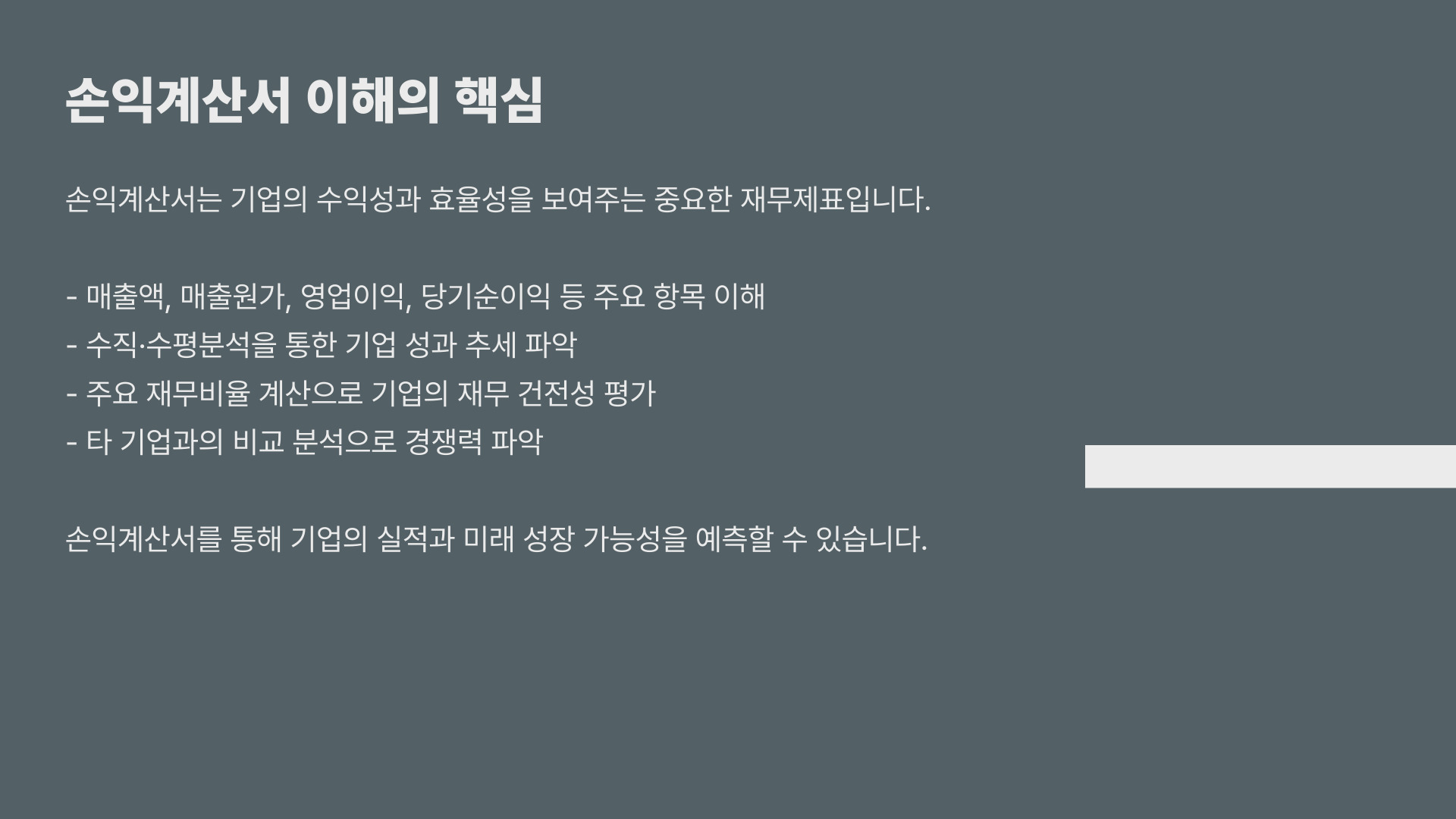 - 다양한 분석 기법을 통해 손익계산서 이해