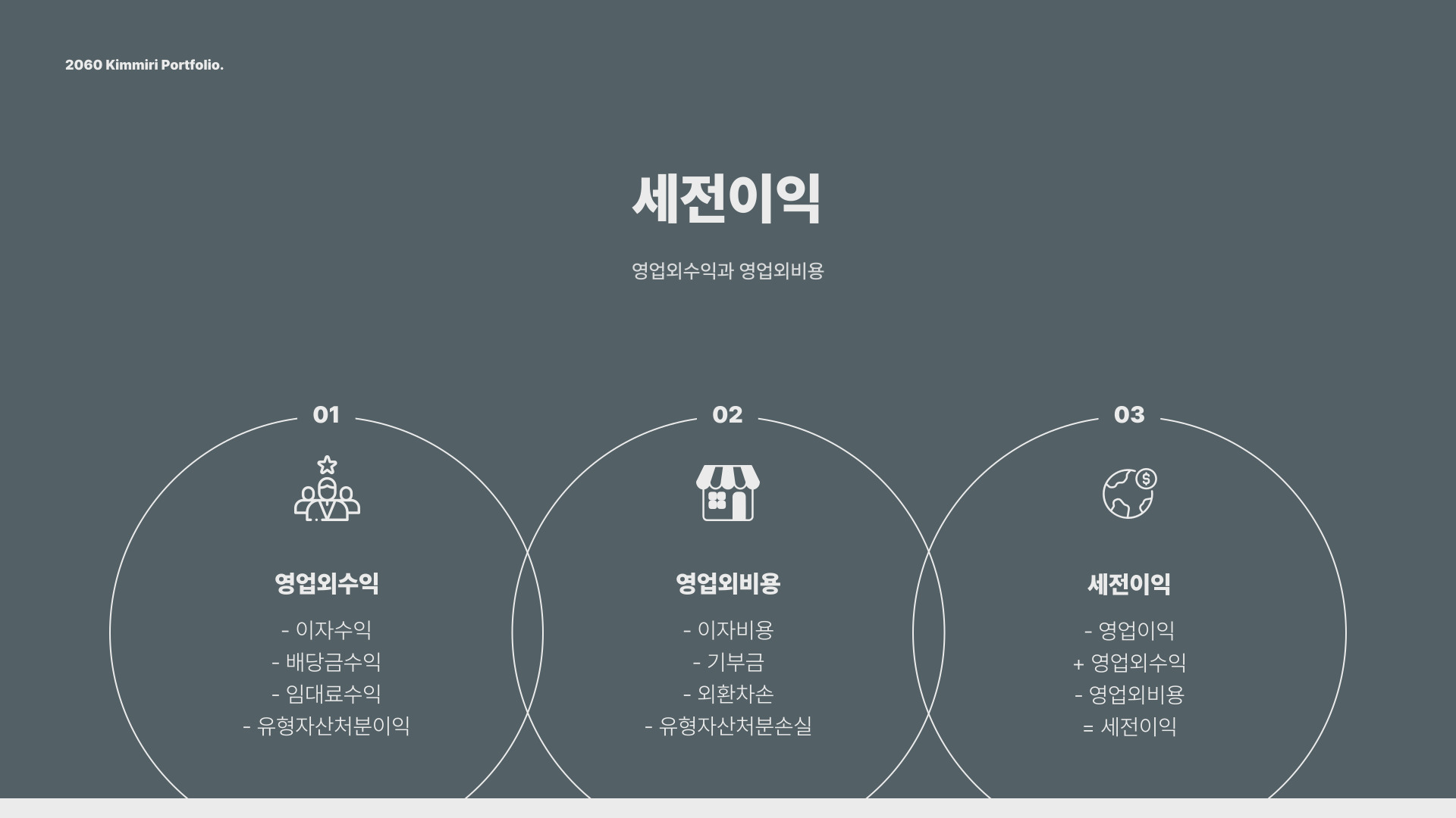 마지막으로, 세전이익과 순이익이 있습니다. 세전이익은 모든 비용을 차감한 후의 이익이며, 순이익은 세금을 포함한 후의 최종 이익입니다. 이러한 항목들은 기업의 재무건전성을 평가하는 데 중요한 역할을 합니다.