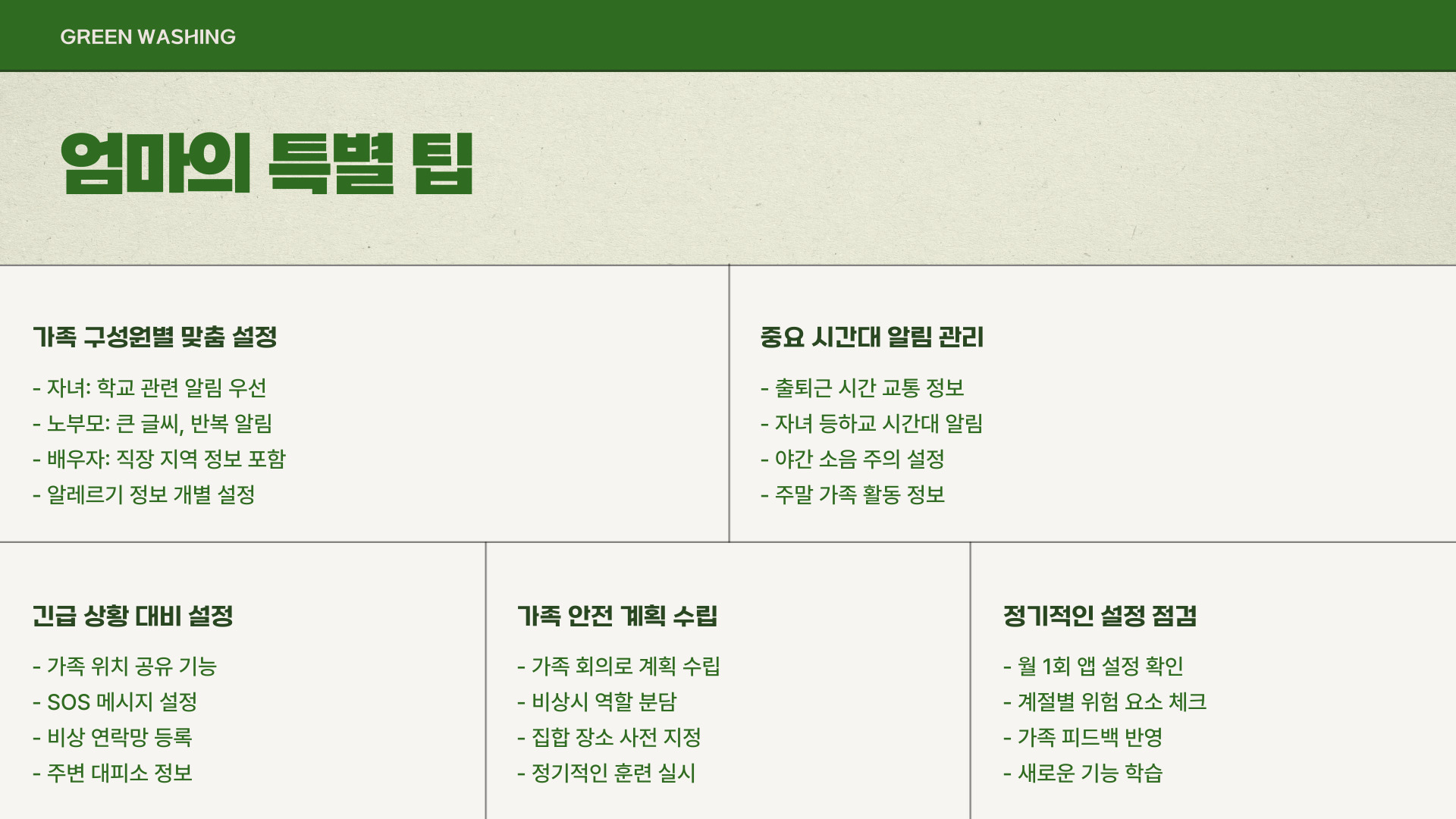 • 가족과의 협업: 가족들이 같은 선택을 하는 것이 좋습니다