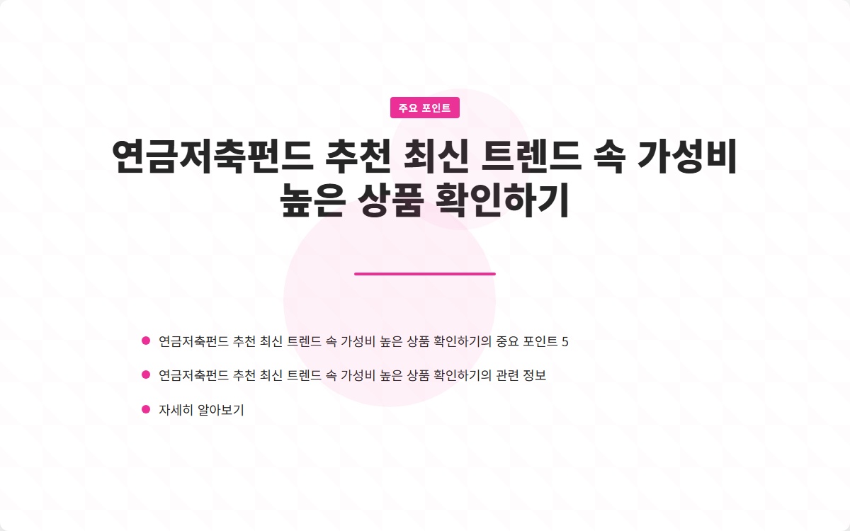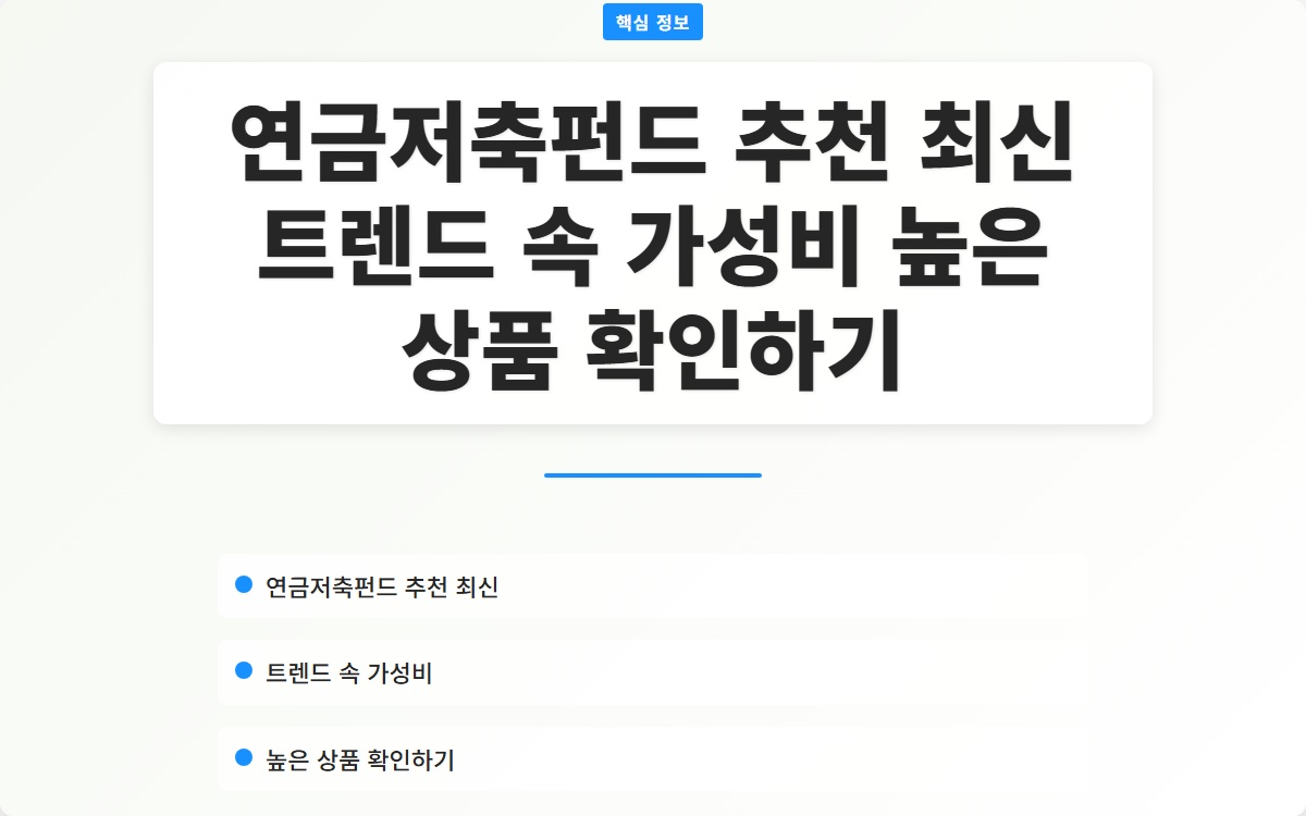 연금저축펀드 추천 최신 트렌드 속 가성비 높은 상품 확인하기