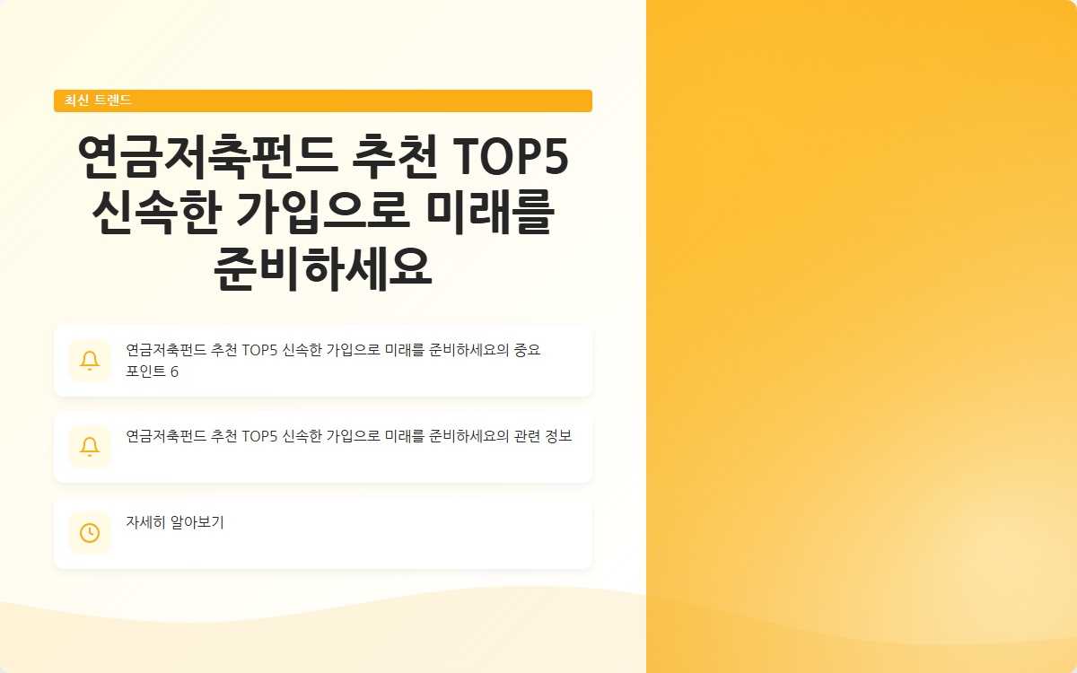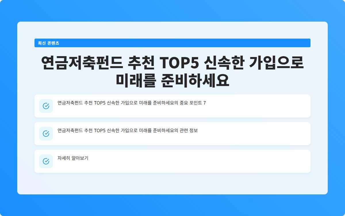 연금저축펀드 추천 TOP5 신속한 가입으로 미래를 준비하세요