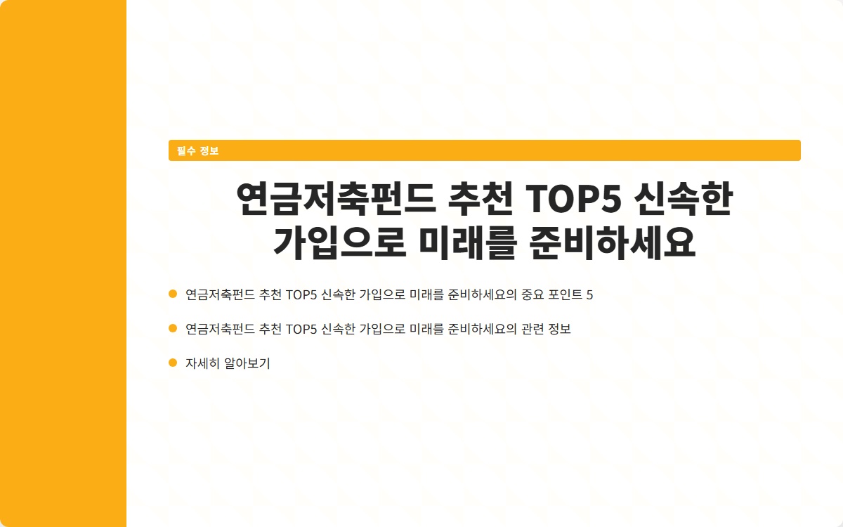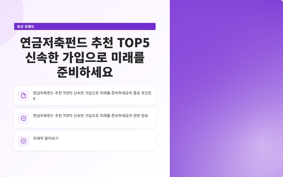 연금저축펀드 추천 TOP5 신속한 가입으로 미래를 준비하세요