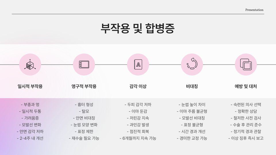 이마거상 시술 후 적절한 관리가 필요합니다. 회복 기간 동안에는 정기적인 얼음찜질이나 안정적인 자세 유지가 도움이 됩니다. 또한, 의사의 지시에 따라 약물을 복용하고, 감염 예방을 위한 청결을 유지해야 합니다. 이러한 관리 방법을 통해 회복 과정을 빠르게 하고, 최상의 결과를 얻을 수 있습니다.