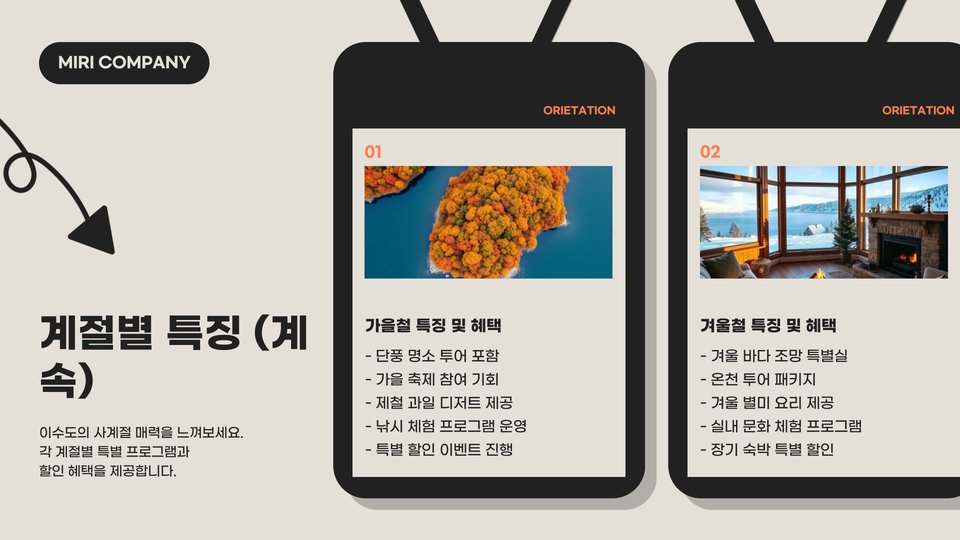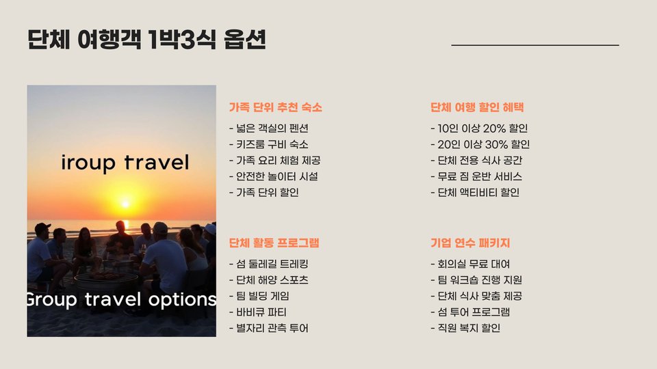 또한, 패키지에 포함된 식사의 질도 높아지고 있습니다. 지역 특산물이나 신선한 재료를 활용한 요리가 제공되며, 이는 여행객들에게 큰 만족을 줍니다. 따라서 이수도의 1박 3식 패키지는 가격 대비 높은 가치를 제공합니다.
