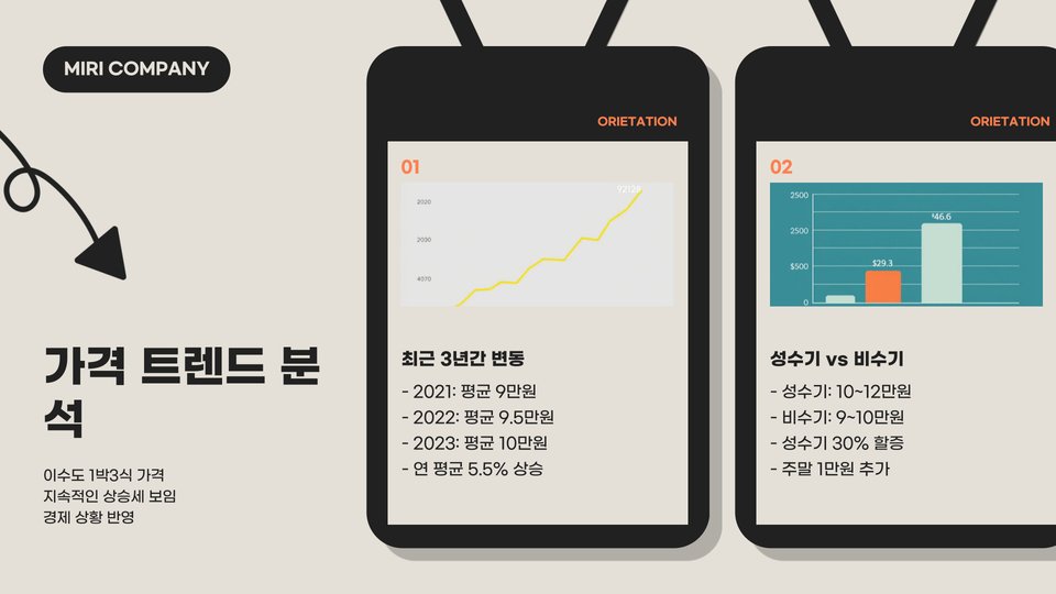 | 1박 3식 평균 가격 | ₩100,000 | ₩150,000 |