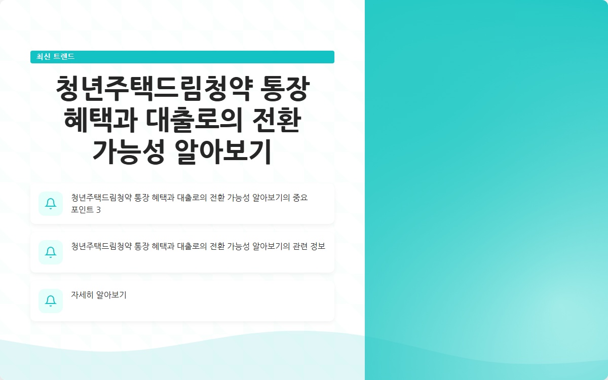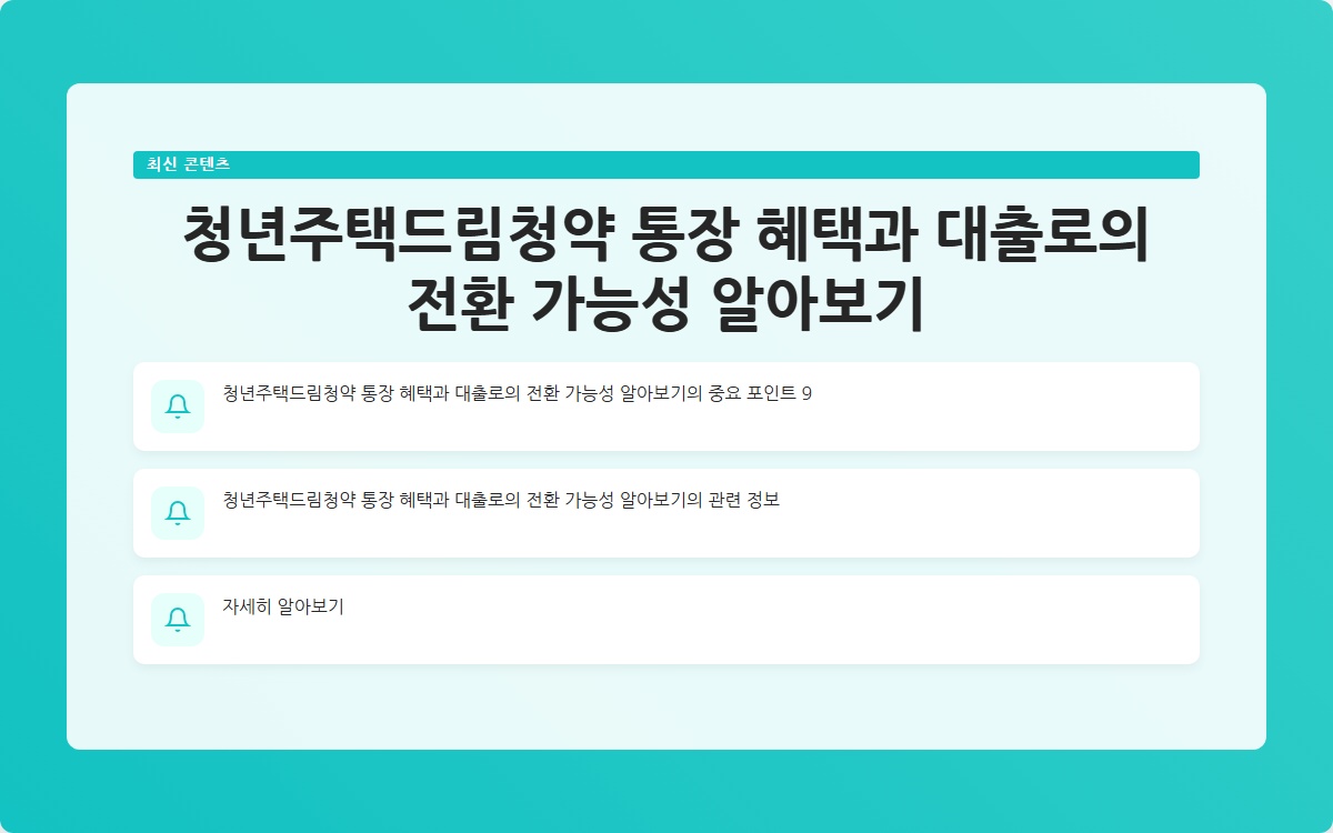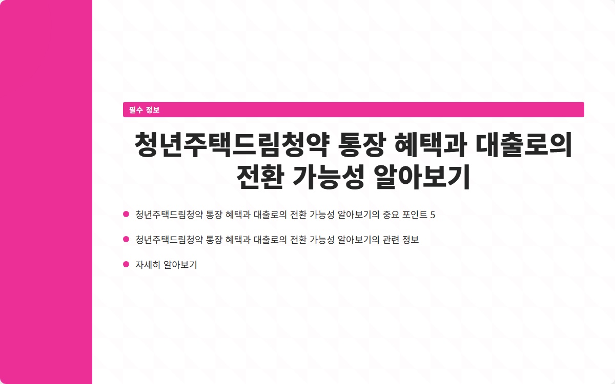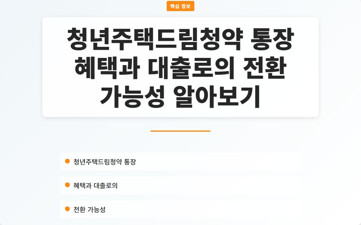청년주택드림청약 통장 혜택과 대출로의 전환 가능성 알아보기