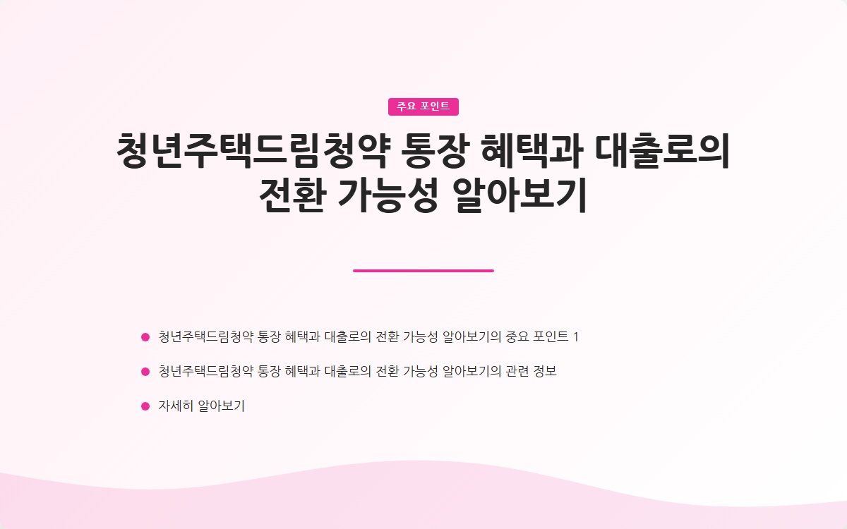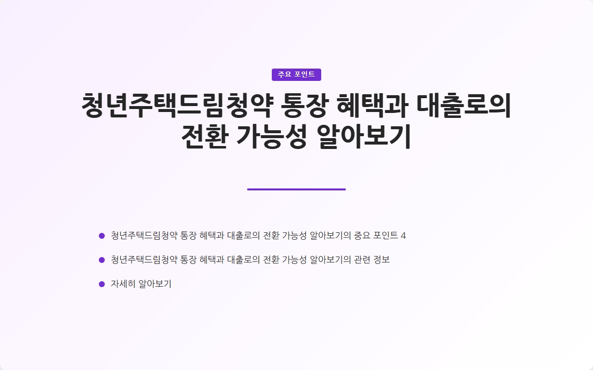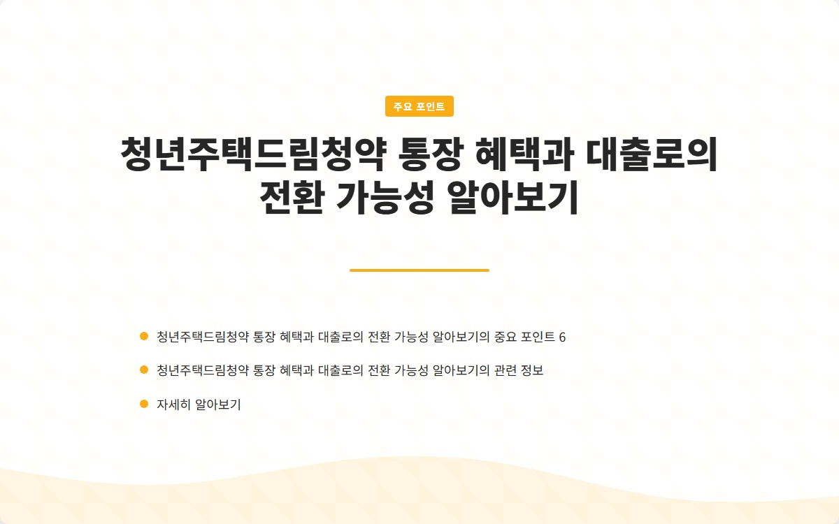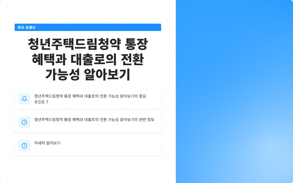 청년주택드림청약 통장 혜택과 대출로의 전환 가능성 알아보기
