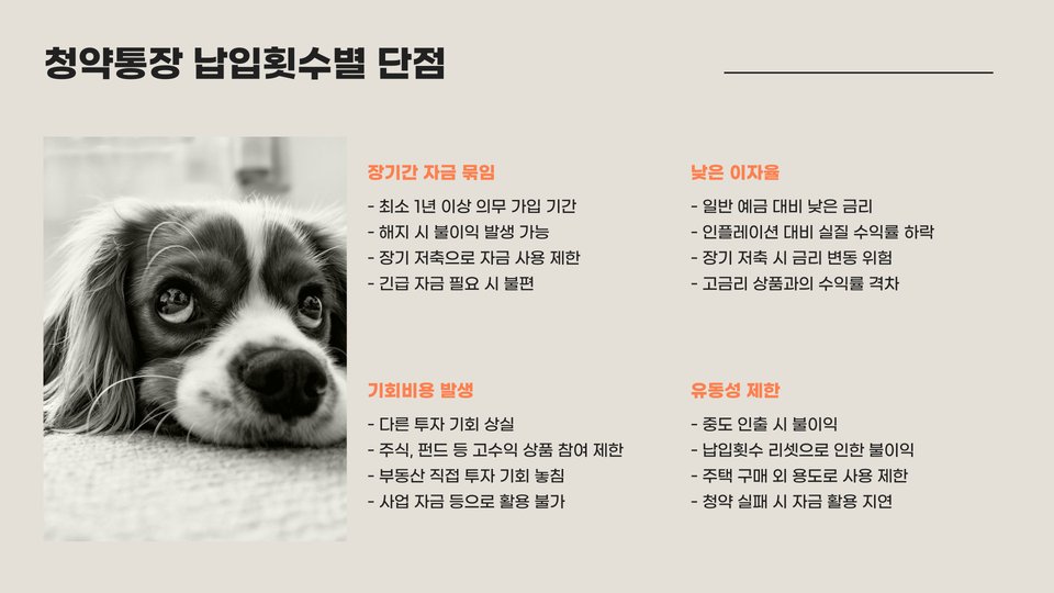 - 청약저축: 기본 납입횟수 10회, 중도해지 시 손해.