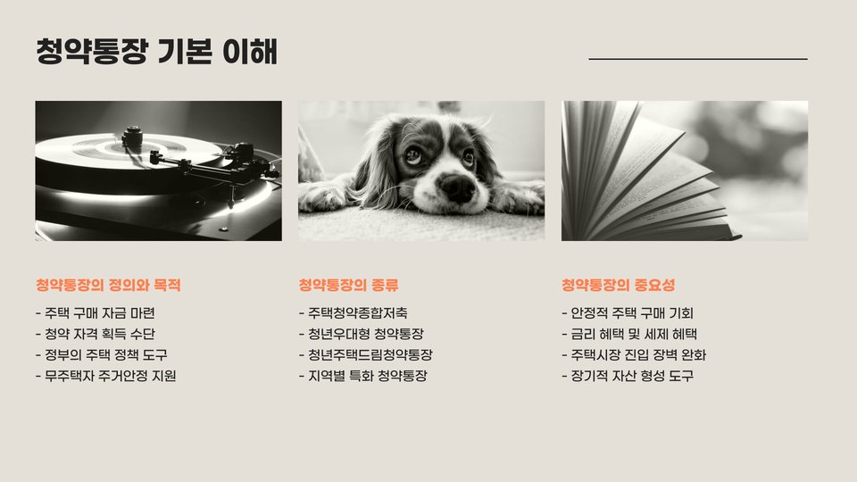 - 청약통장은 효과적인 금융상품으로 주택 구매에 필수