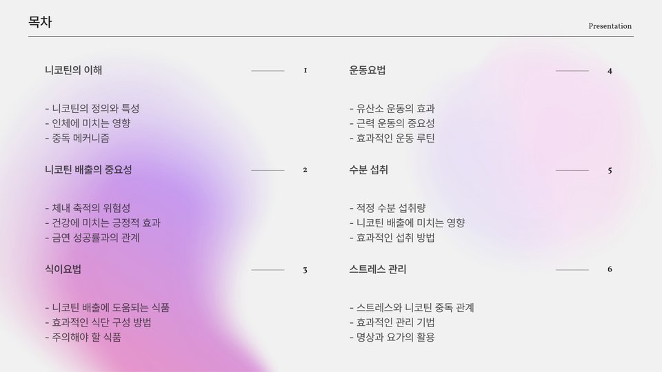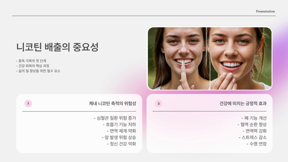 - 니코틴 배출은 건강한 삶을 위한 필수 과정입니다.