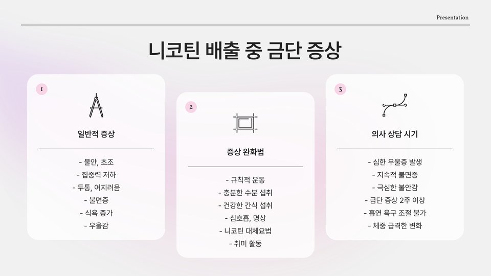 - 니코틴 중독은 심장 질환과 폐 장애 등 건강 문제의 위험을 증가