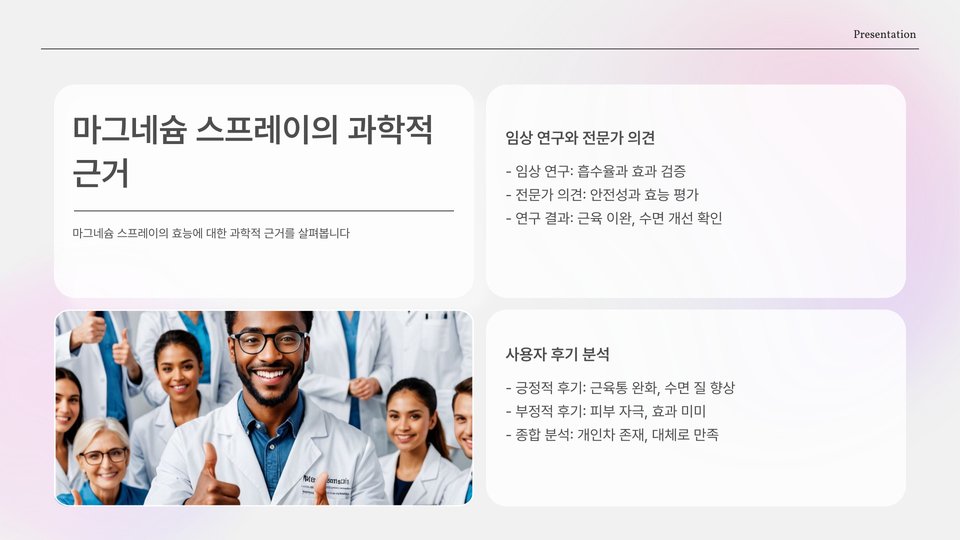 마지막으로는 사용 가능 연령과 주의사항을 반드시 체크해야 합니다. 어린이나 특정 질환을 가진 사람들은 사용을 피해야 할 수도 있으며, 이 경우 전문의와 상담하는 것이 좋습니다. 올바른 제품 선택과 사용법을 통해 마그네슘 스프레이의 효능효과를 최대한 활용하는 것이 중요합니다.