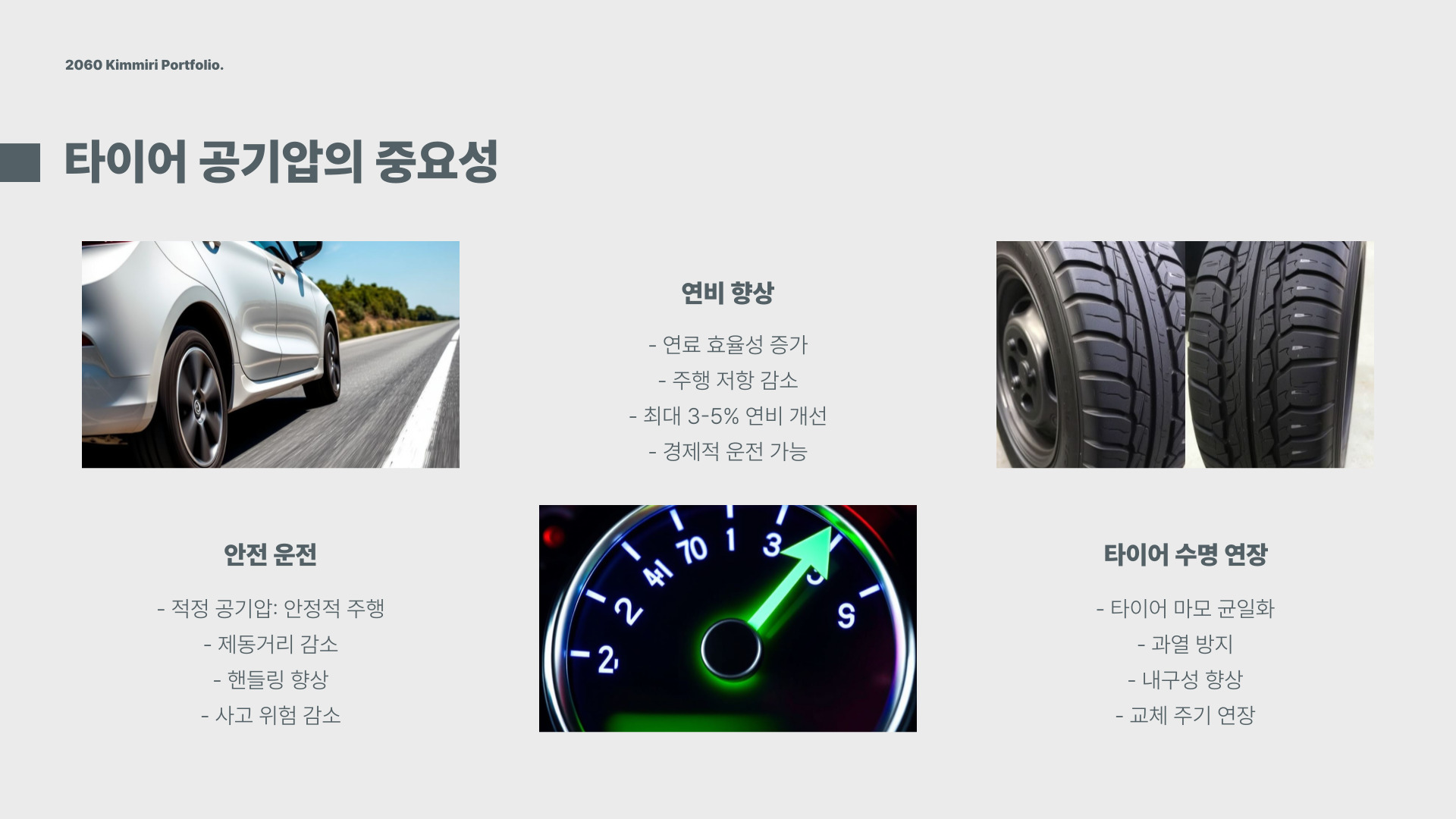 • 타이어 공기압은 차량 안전에 필수적이다.