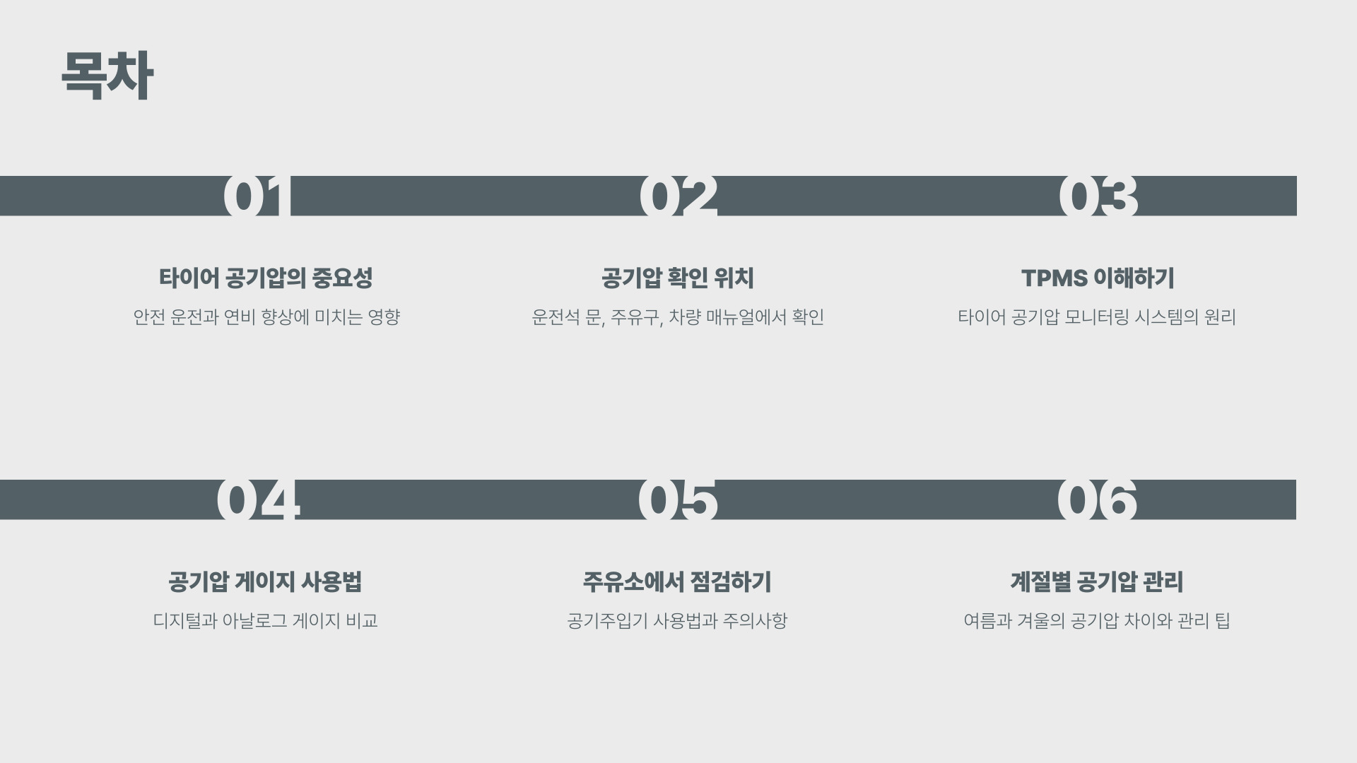 타이어 공기압을 확인하는 것은 차량 안전과 효율을 위해 필수적인 단계입니다. 5분만 투자하면 정상적인 공기압을 유지할 수 있으니, 여러분의 소중한 차량을 위해 꼭 실천해 보시기 바랍니다.