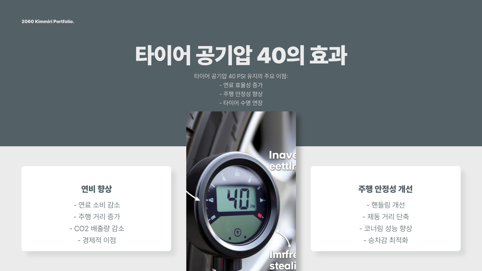 - 40psi 유지 시 연비 및 타이어 수명 향상