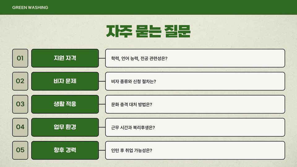 해외 인턴십은 풍부한 경험과 자기 발전의 좋은 기회입니다. 그러나 성급하게 신청하기 전, 위에서 언급한 사항들을 충분히 검토하고 준비하는 과정이 필요합니다. 프로그램의 적합성을 평가하고, 비자 및 법적 요구 사항을 확인하며, 문화 적응과 언어 능력까지 다각도로 고려하여 멋진 인턴십 경험을 쌓길 바랍니다.