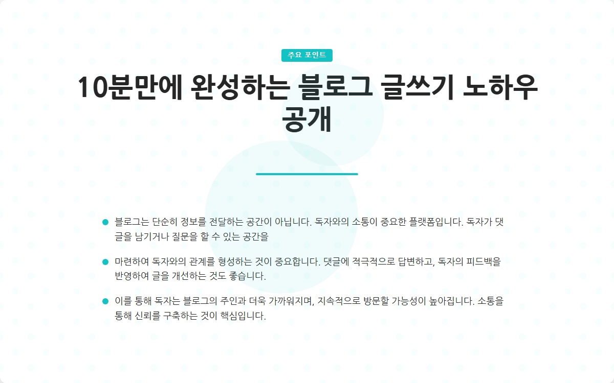 블로그는 단순히 정보를 전달하는 공간이 아닙니다. 독자와의 소통이 중요한 플랫폼입니다. 독자가 댓글을 남기거나 질문을 할 수 있는 공간을 마련하여 독자와의 관계를 형성하는 것이 중요합니다.