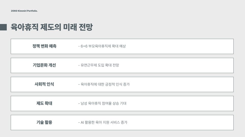 | 육아휴직 필요성 | 부모와 자녀 간의 안정감과 유대감 강화 |