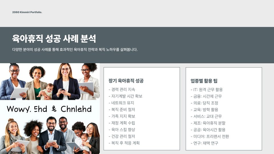 육아휴직 중 쌓은 경험을 바탕으로, 복직 후의 업무 방식이나 역할을 재조정할 수 있습니다. 유연근무제나 재택근무와 같은 옵션이 있다면, 이를 적극적으로 활용하여 업무와 육아의 균형을 맞추는 것이 중요합니다.