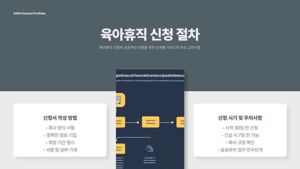 육아휴직을 준비하는 과정에서는 필요한 서류를 미리 준비하고, 회사와의 협의를 통해 원활한 진행을 도모해야 합니다. 모든 절차를 명확히 이해하고 준비하는 것이 육아휴직을 성공적으로 이끄는 첫걸음이 될 것입니다.