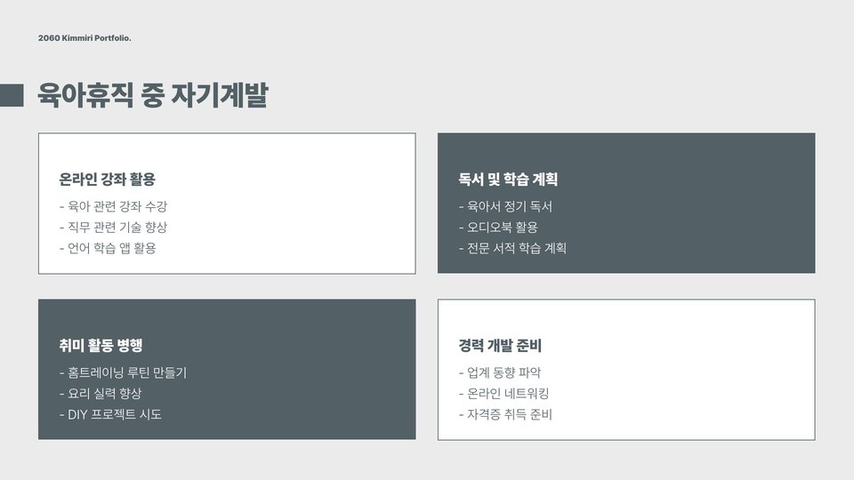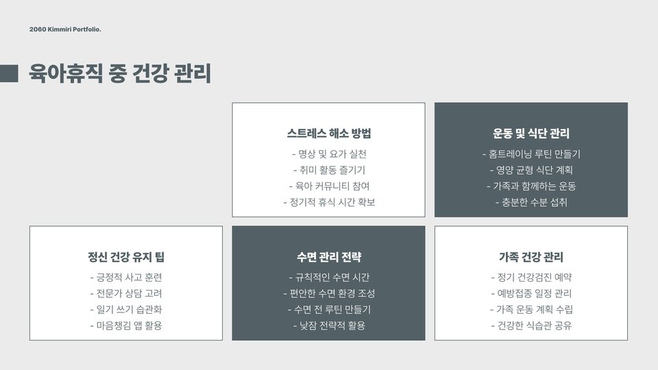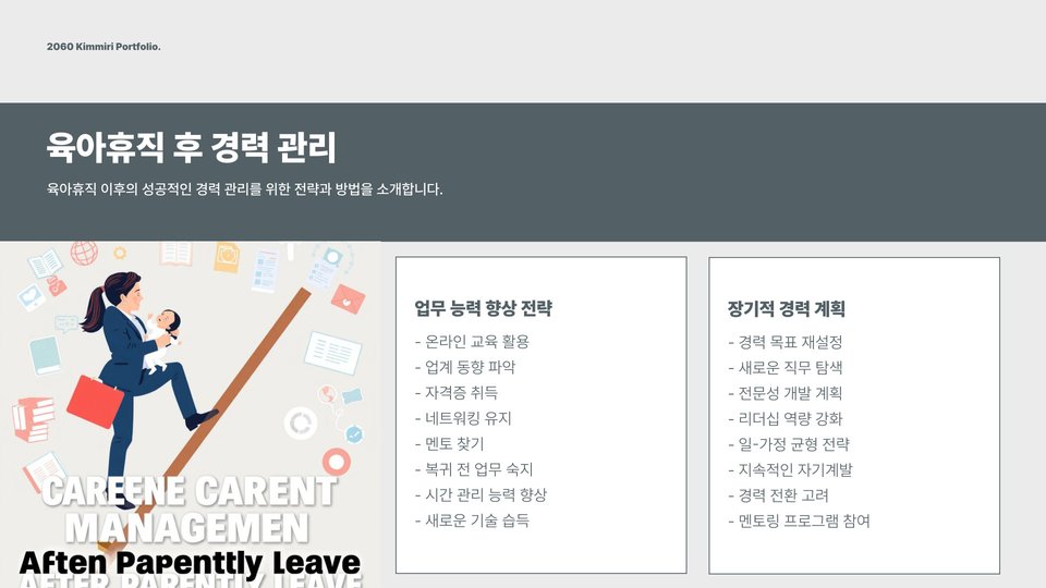 - 복직 준비를 철저히 하여 원활하게 업무에 복귀하자.