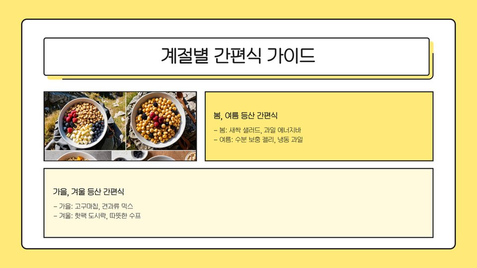 2025년에는 등산 간편식의 트렌드가 더욱 다채로워질 것으로 예상됩니다. 건강을 중시하는 소비자들이 늘어나면서, 자연 재료나 유기농 성분을 사용한 제품들이 인기를 끌고 있습니다. 예를 들어, 고단백, 저칼로리, 비타민과 미네랄이 풍부한 간편식이 선호되고 있습니다.