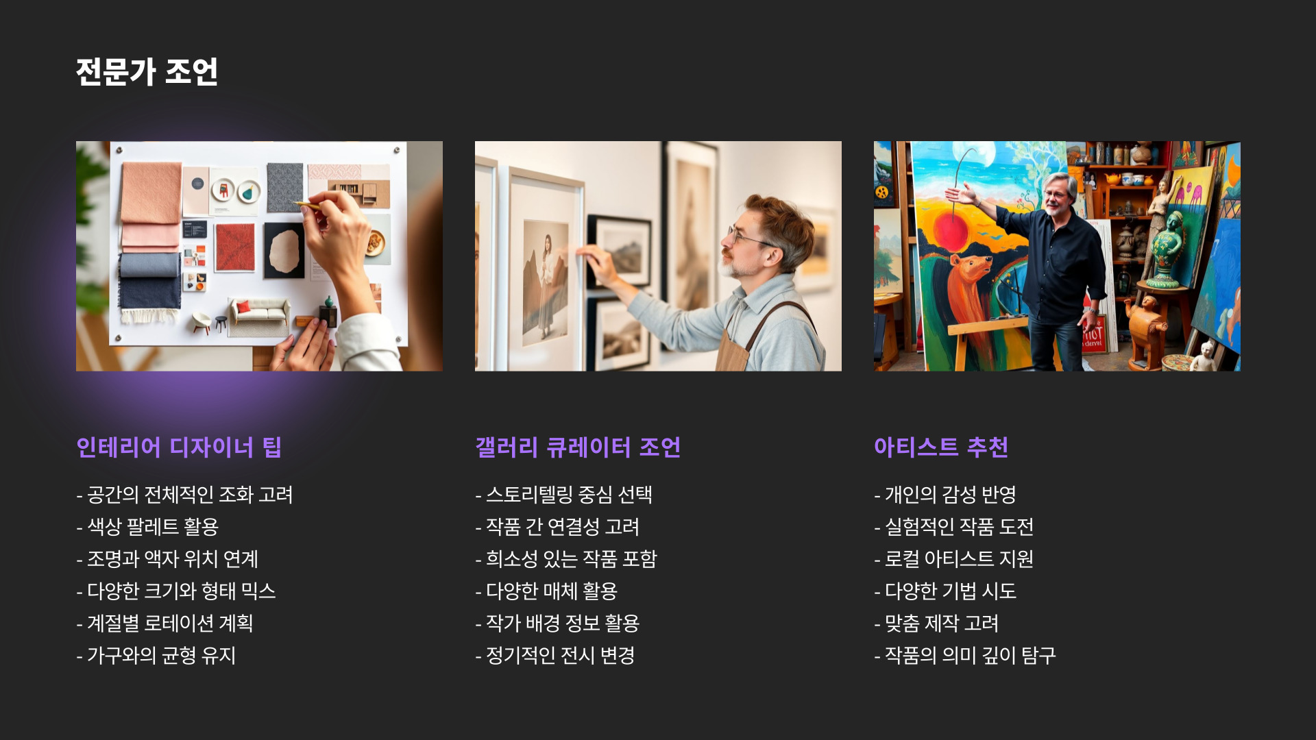 - 관리: 정기적인 관리로 그림을 오랫동안 보존할 수 있습니다.