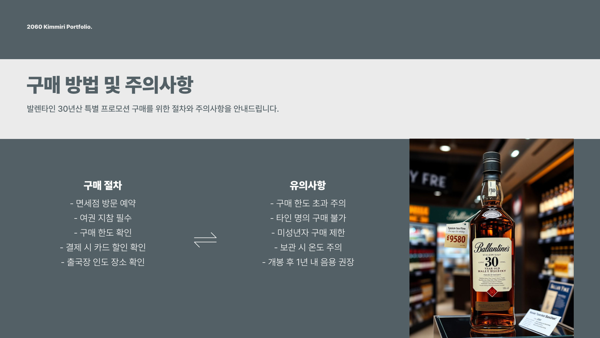 면세혜택은 노트북이나 스마트폰처럼 전자제품뿐만 아니라 프리미엄 주류에서도 큰 차이를 만들어 줍니다. 특히, 발렌타인 30년산은 명품 브랜드로 인식되기 때문에, 이 기회를 놓치지 않도록 주의해야 합니다. 높은 위스키의 품질을 경험하면서도 비용을 절감할 수 있는 기회인 만큼, 상품 구매를 고려하는 소비자들에게는 중요한 요소입니다.