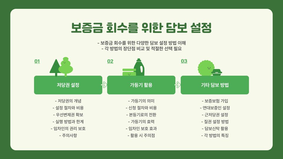 | 보증금 사용 용도 | 임대인과의 사전 합의가 필수적임. |