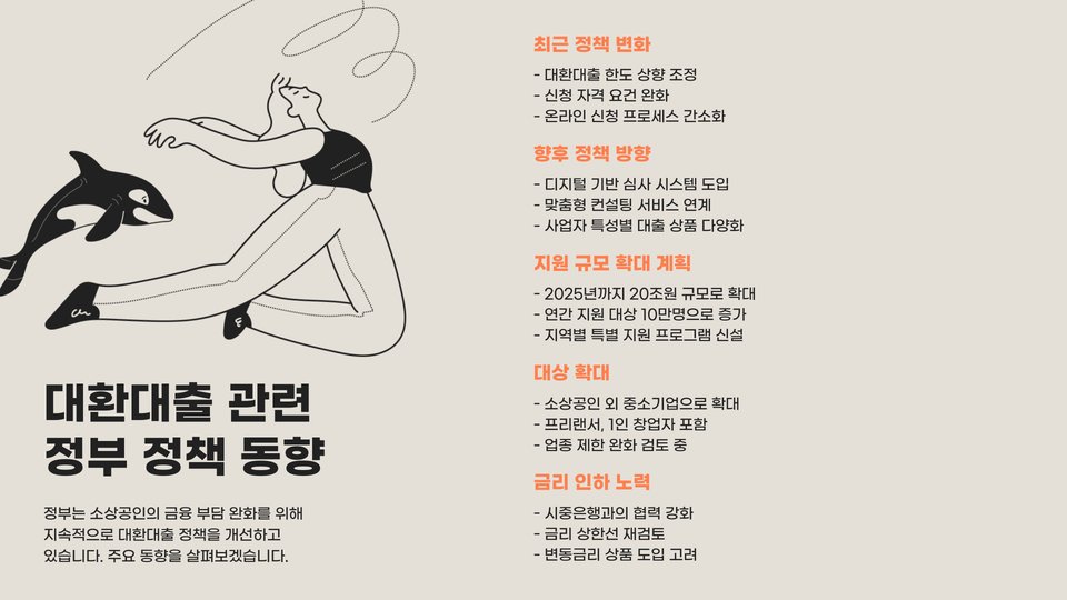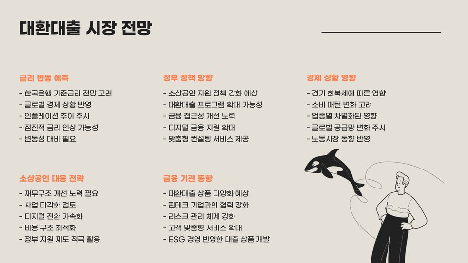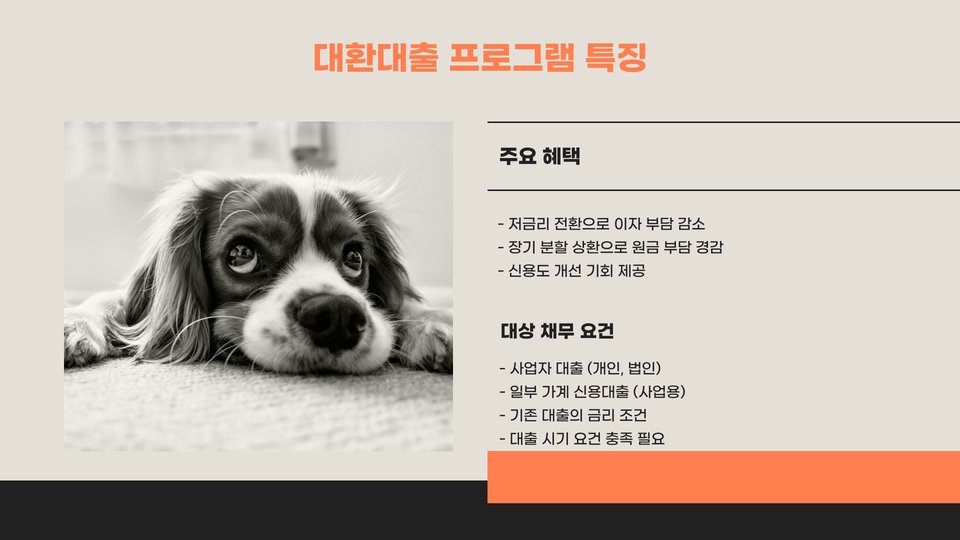 - 대환대출은 소상공인의 재정적 부담을 경감시켜 줍니다.