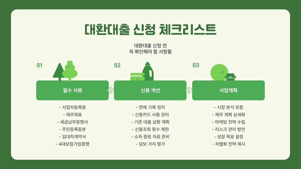 대환대출을 신청하기 전에 필요한 서류를 미리 준비하세요. 또한, 금리가 낮고 조건이 유리한 대출 상품을 찾아보는 것이 중요합니다.
